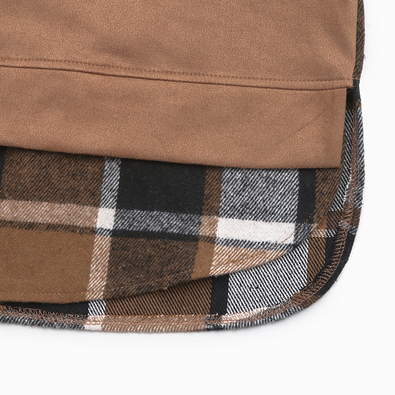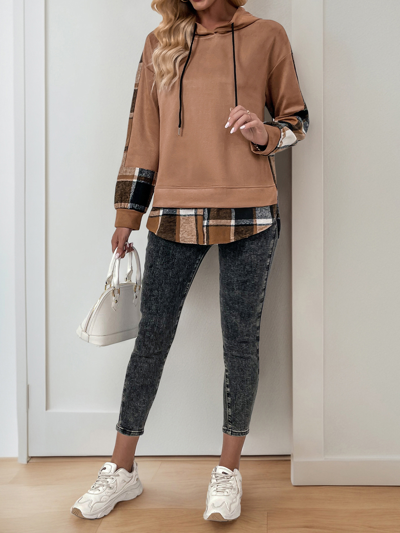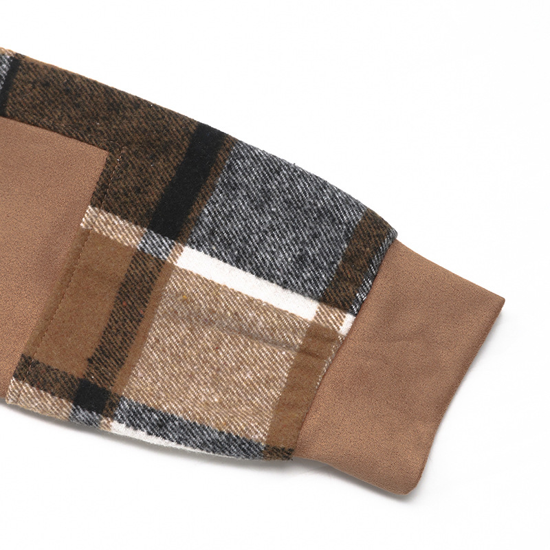 European And American Long Sleeve Plaid Colorblock Hooded Velvet Padded Sweater